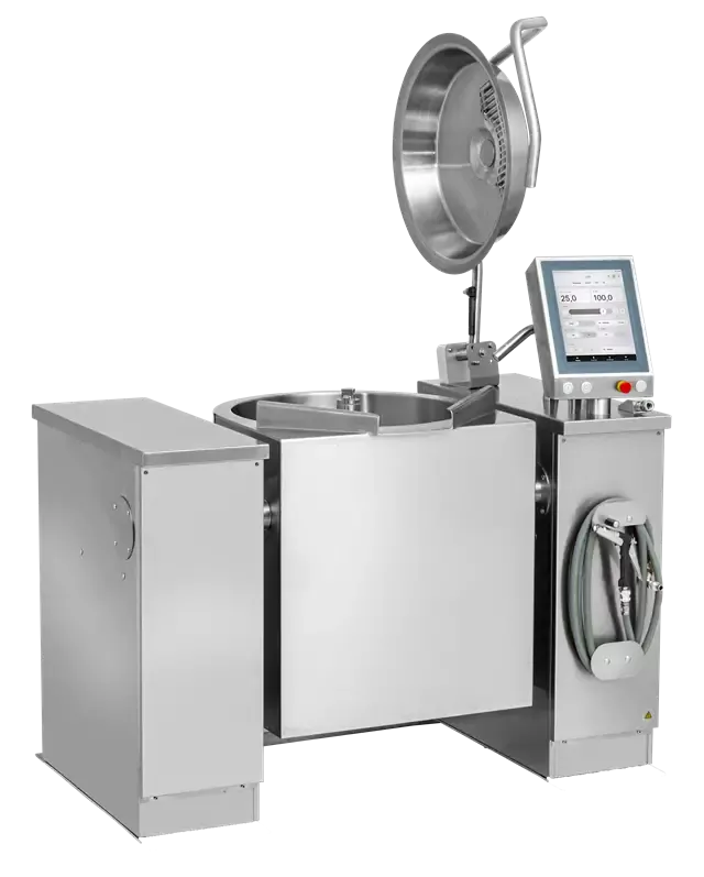 Joni OptiMix 300L steam jacketed mixing kettle is an ergonomic batch cooking workhorse with a powerful electric tilt function.